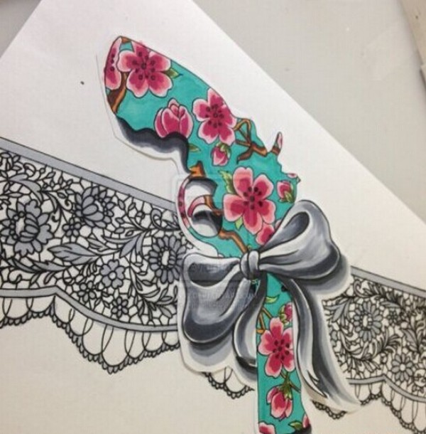性感的蕾丝边手枪纹身手稿