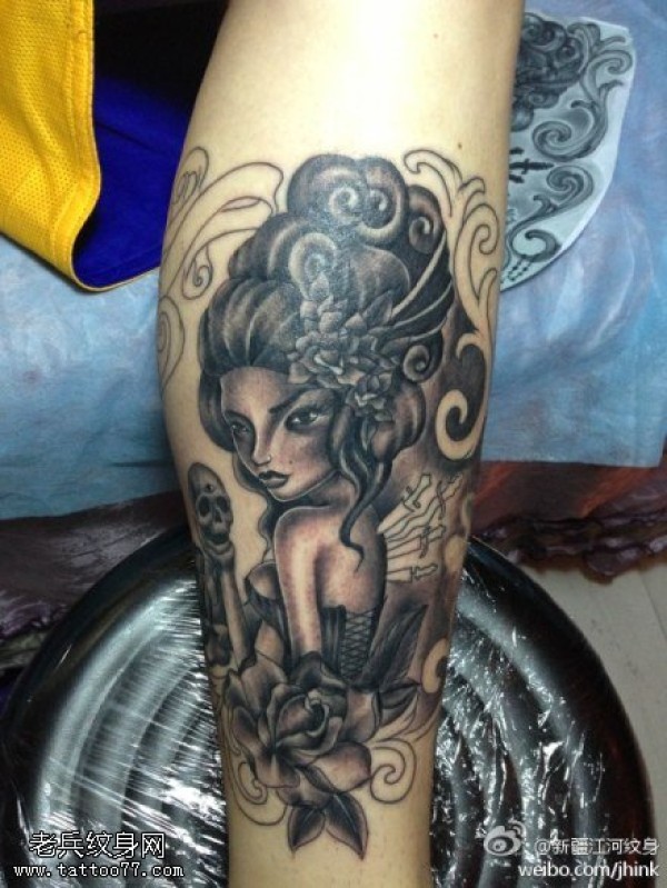 花腿纹身--一组大黑腿纹身图案作品欣赏