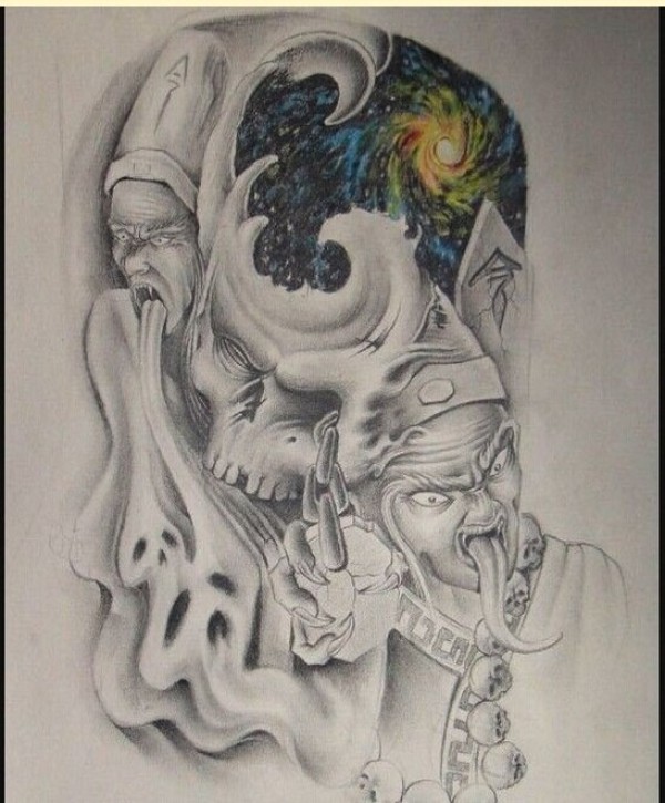 能面万媚纹身手稿_52张日式能剧面具纹身手稿图案素材欣赏