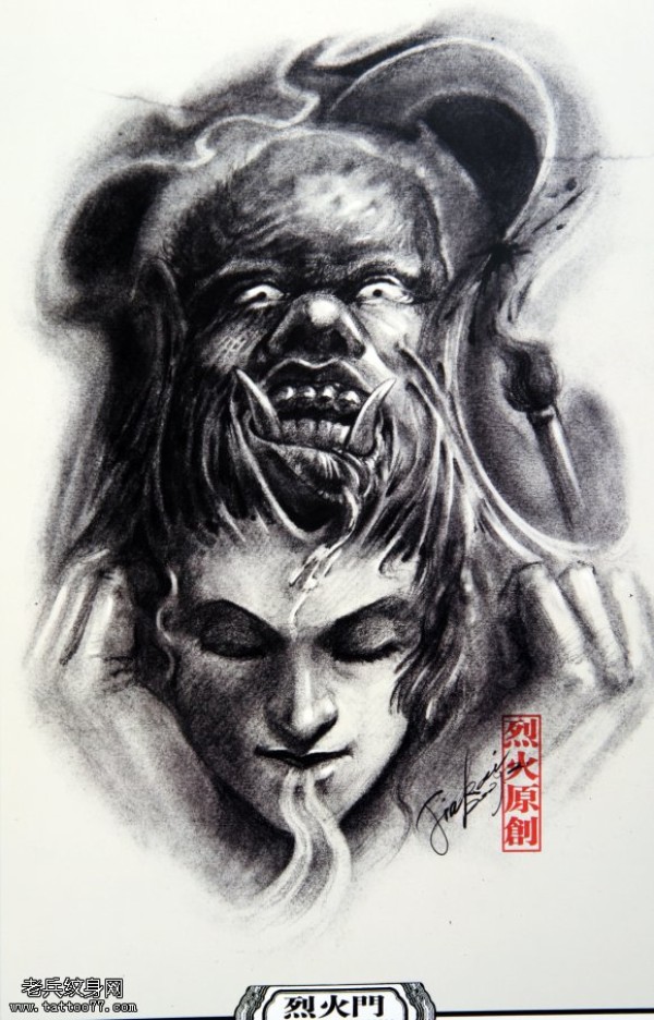能面万媚纹身手稿_52张日式能剧面具纹身手稿图案素材欣赏