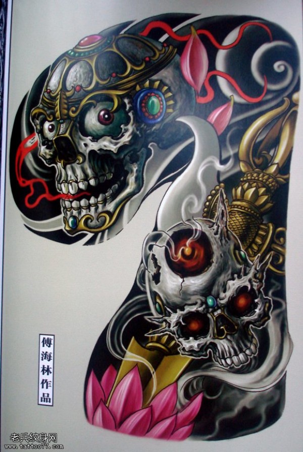 一款鬼头半胛纹身图案