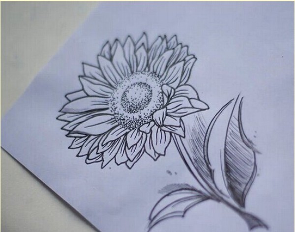 一款向日葵纹身手稿图案分享 图片
