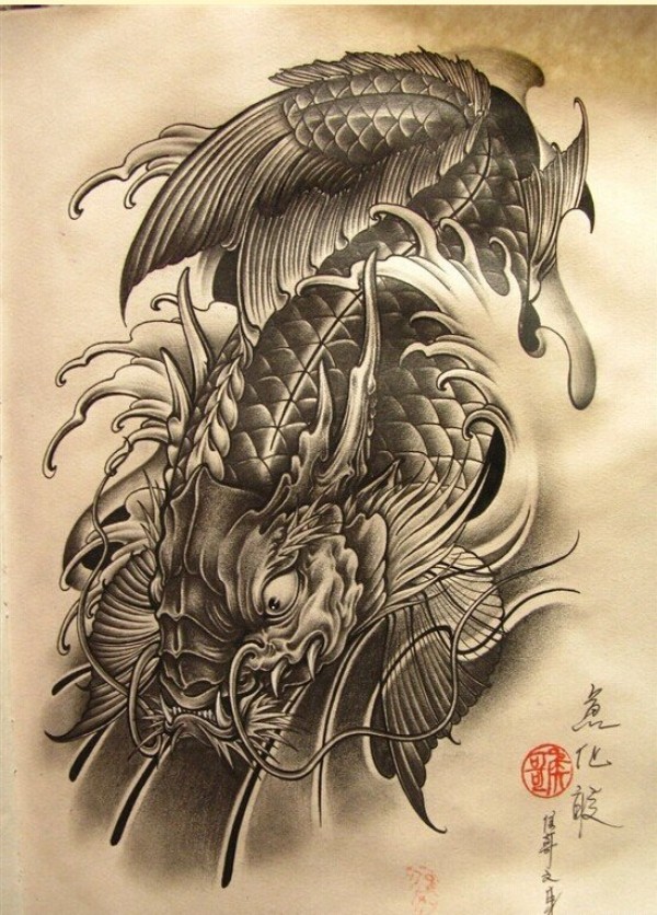 漂亮鳌鱼纹身手稿图案欣赏图片