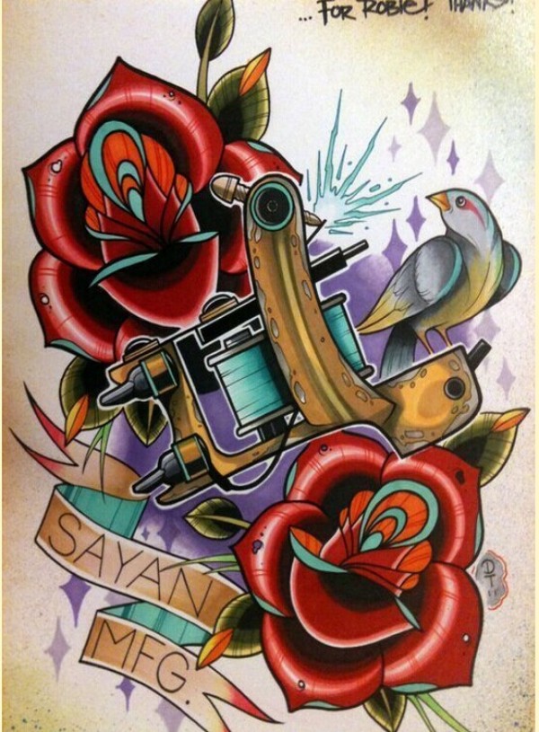 个性纹身机玫瑰花纹身手稿图案分享图片