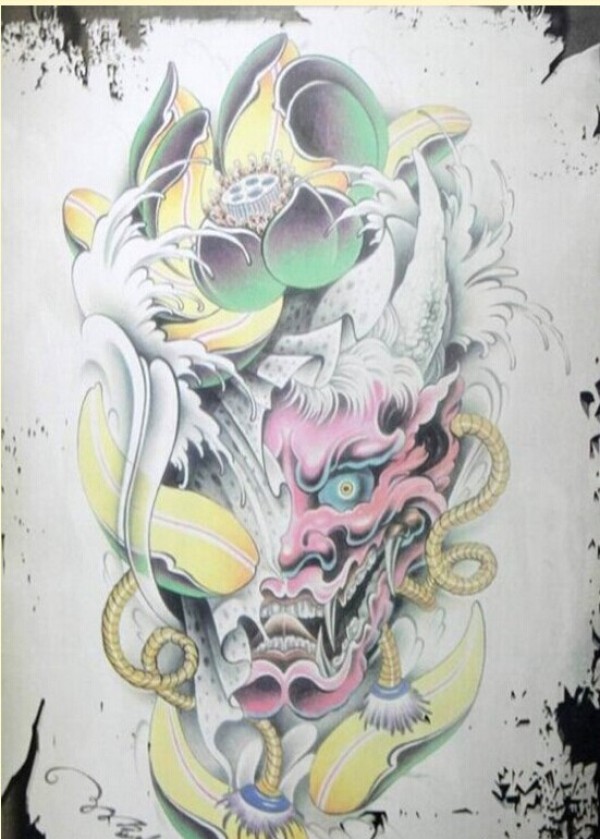 能面万媚纹身手稿_52张日式能剧面具纹身手稿图案素材欣赏