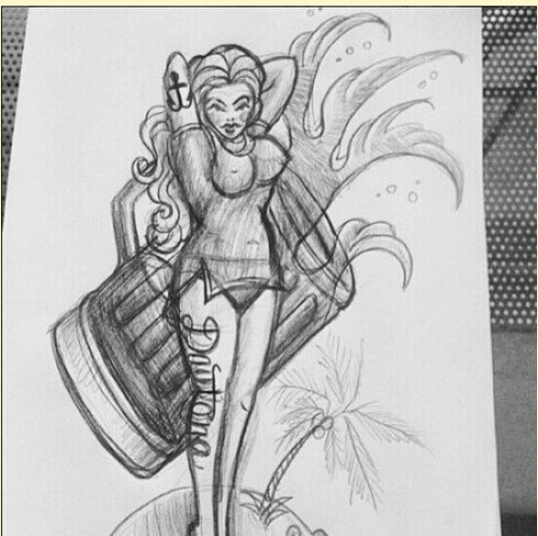 时尚个性啤酒女郎纹身手稿图案欣赏图片