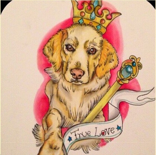一款漂亮皇冠狗狗纹身手稿图案分享图片