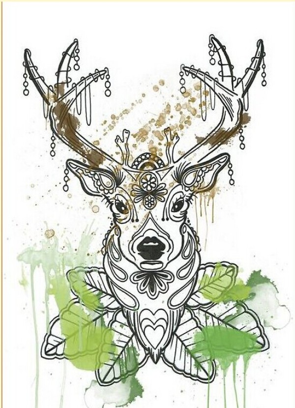 时尚漂亮羚羊纹身手稿图案欣赏图片