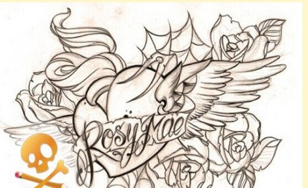 个性爱心翅膀纹身手稿图案欣赏图片