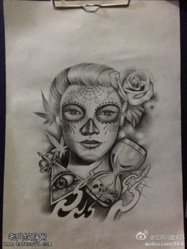 能面万媚纹身手稿_52张日式能剧面具纹身手稿图案素材欣赏