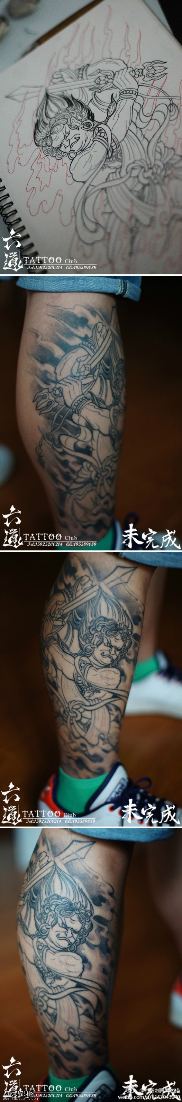 花腿纹身--一组大黑腿纹身图案作品欣赏
