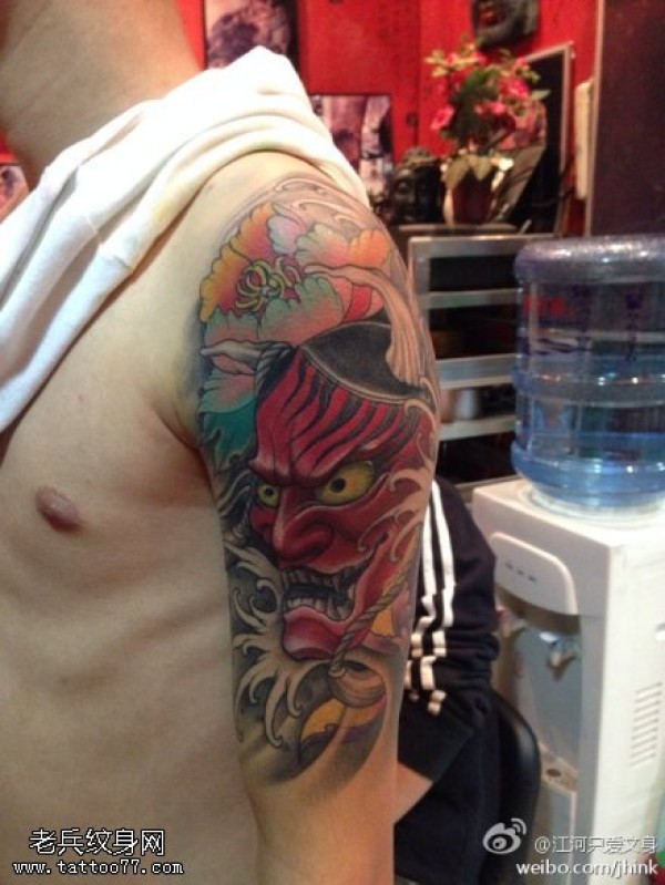 大臂彩色般若纹身图片
