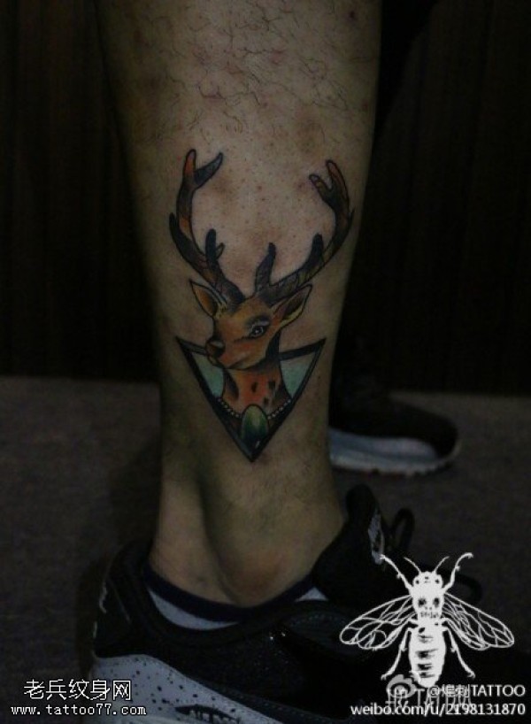 腿部彩色羚羊纹身图片