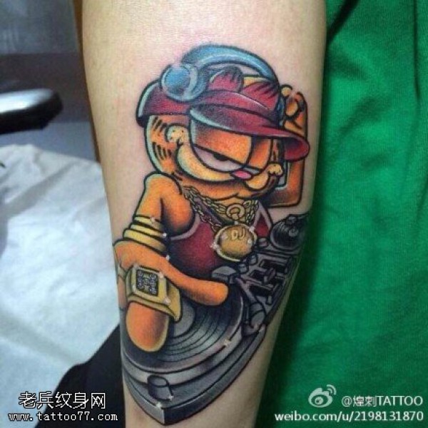 手臂彩色加菲猫纹身图片