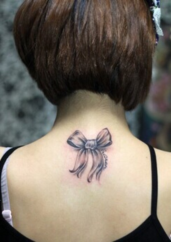 清新唯美的蝴蝶结纹身