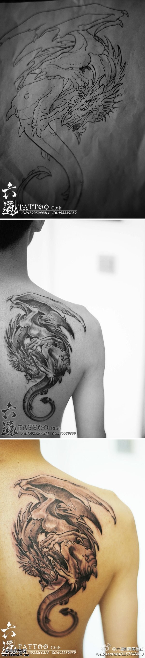 龙纹身手稿_一组老传统黑灰龙手稿纹身图案