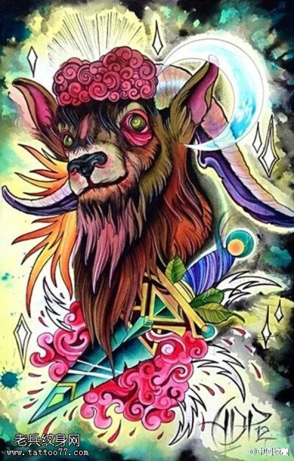 shool彩色羊纹身手稿图案