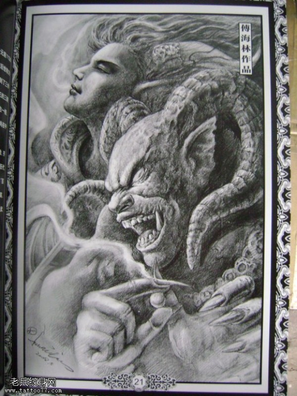 龙纹身手稿_一组老传统黑灰龙手稿纹身图案