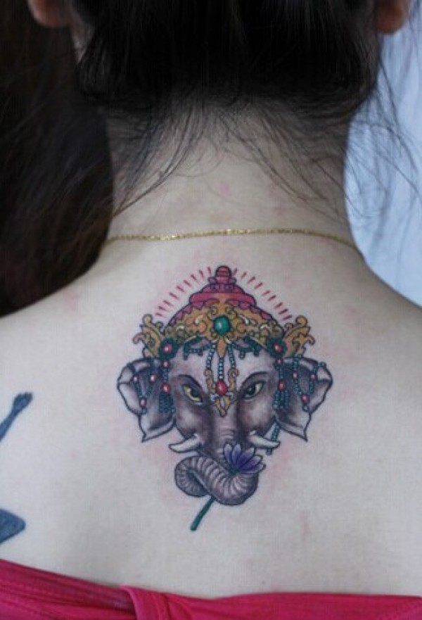 女生背部好看的象神纹身
