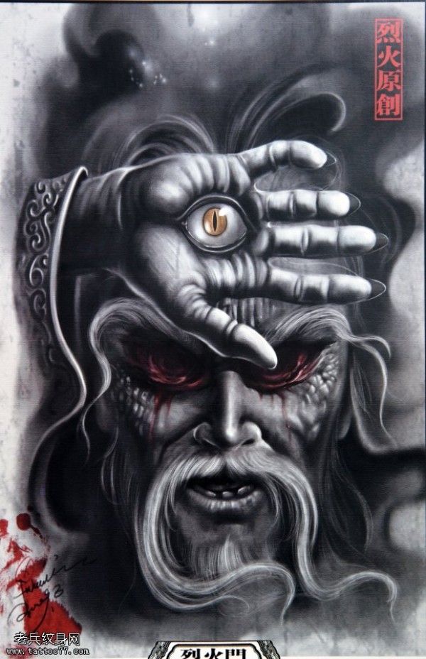 能面万媚纹身手稿_52张日式能剧面具纹身手稿图案素材欣赏
