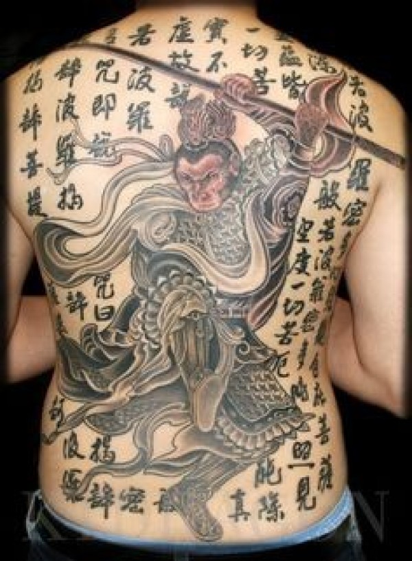 满背帅气经典的齐天大圣孙悟空纹身