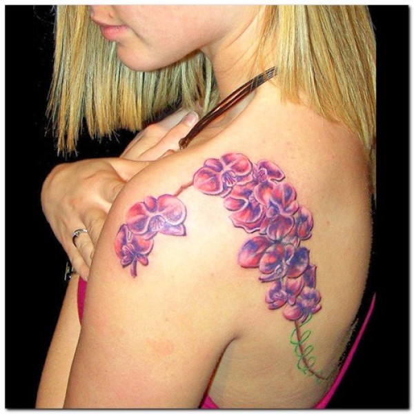 女生肩花纹身_15张女性双肩对称的肩花纹身图案作品图片