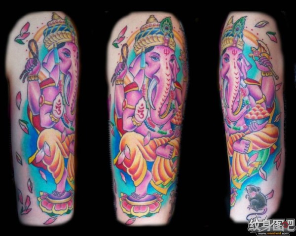 手臂黑灰象神_一组12张手臂上的黑灰象神纹身图案作品欣赏