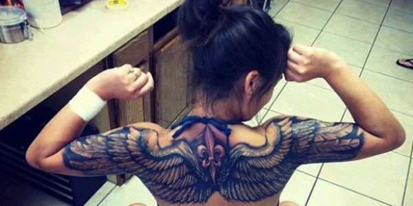 性感女生满背创意文身作品