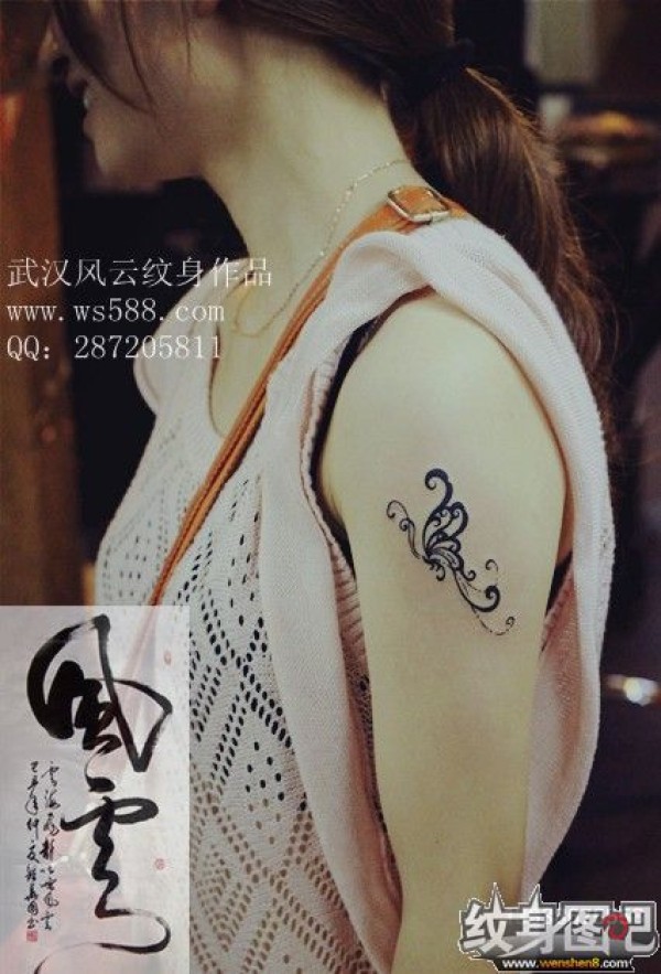 大臂上花藤一样的蝴蝶