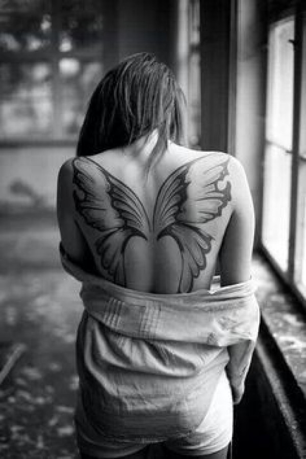 女生背部唯美漂亮的蝴蝶翅膀纹身