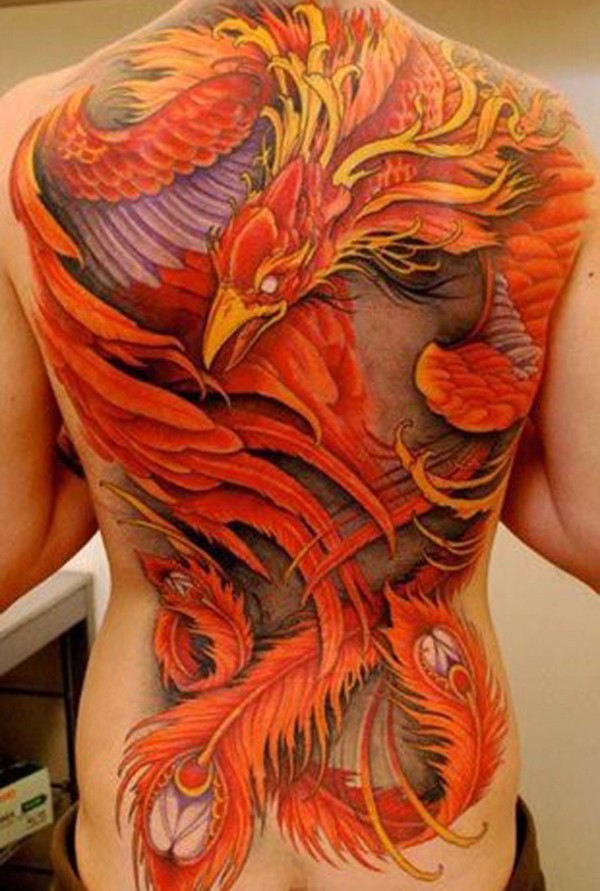 满背个性潮流的火凤凰纹身