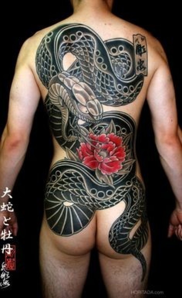 满背经典大气的蛇纹身