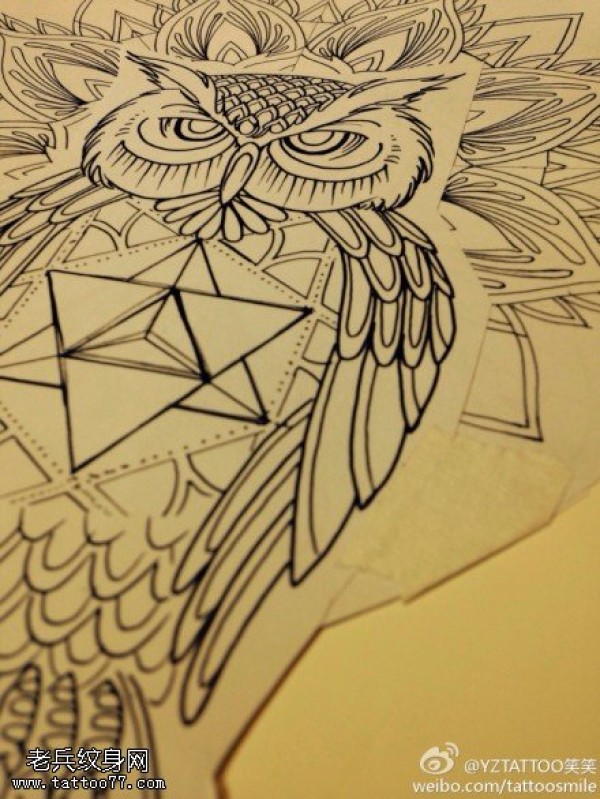 猫头鹰线稿纹身手稿图案