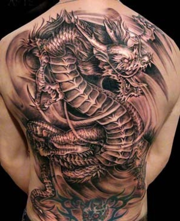 龙纹身手稿_一组老传统黑灰龙手稿纹身图案