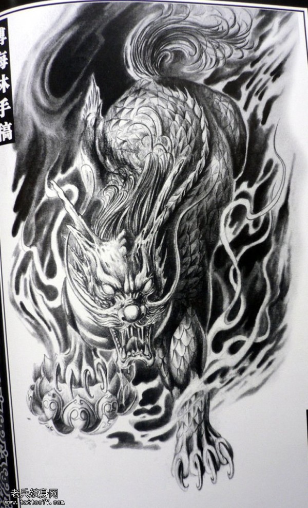 龙纹身手稿_一组老传统黑灰龙手稿纹身图案