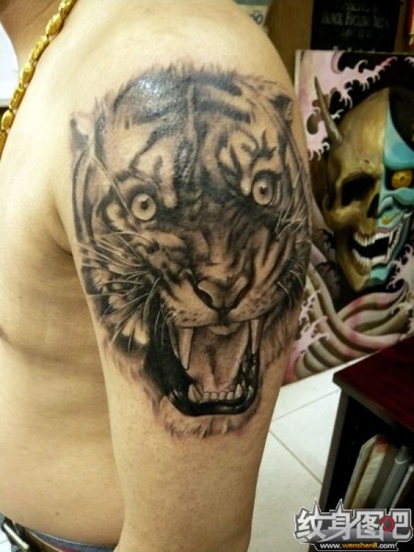 大臂上呼啸的老虎头
