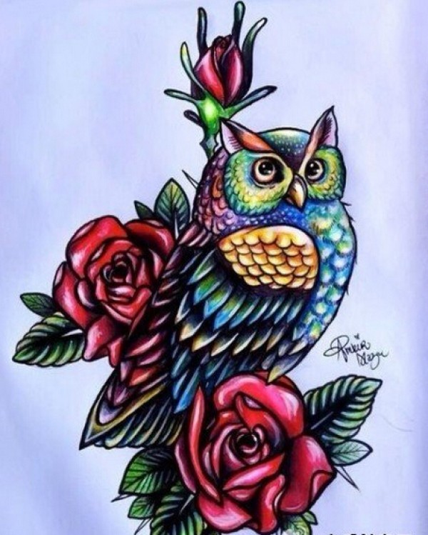 一款潮流经典时尚的猫头鹰纹身手稿图图片