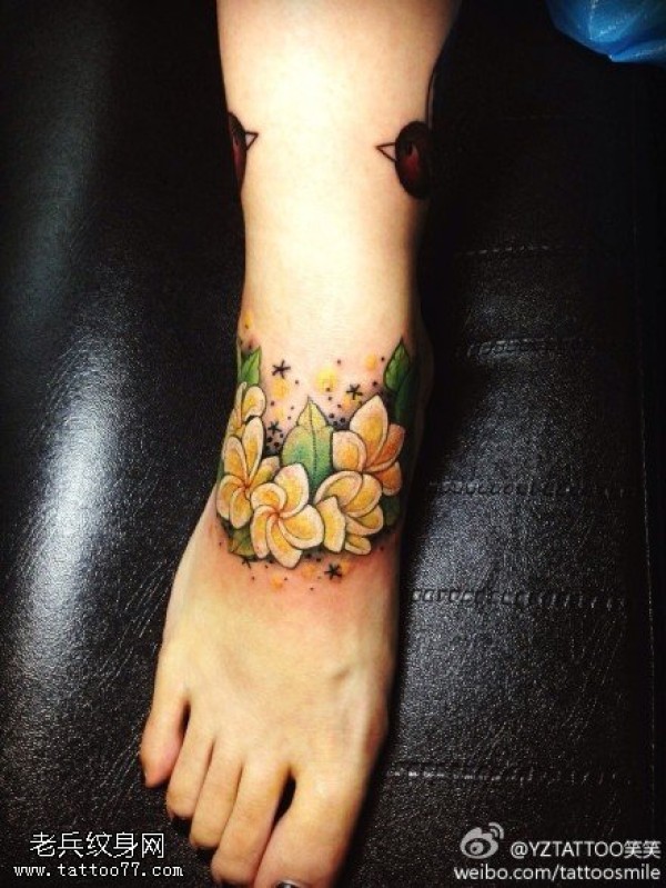 清新小桃花脚踝纹身_脚部纹身图案大全_纹身图吧