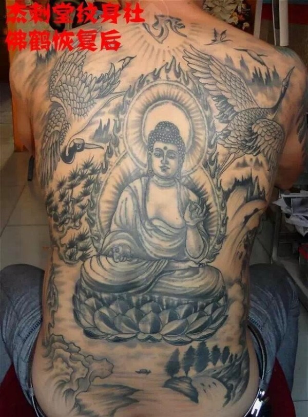 男士背部满背佛纹身