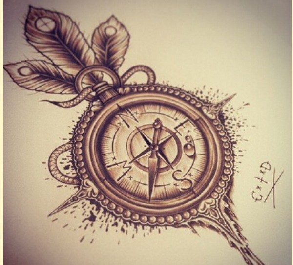 时尚唯美的指南针纹身手稿图片欣赏图片