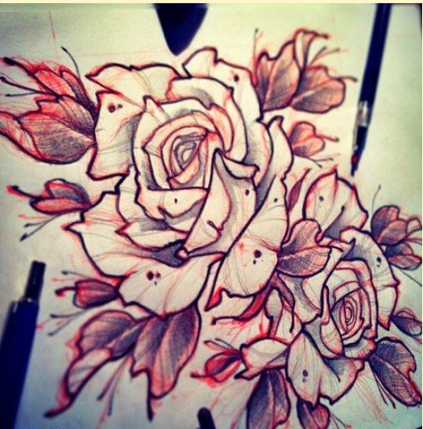 时尚漂亮好看的玫瑰花纹身手稿图案欣图片