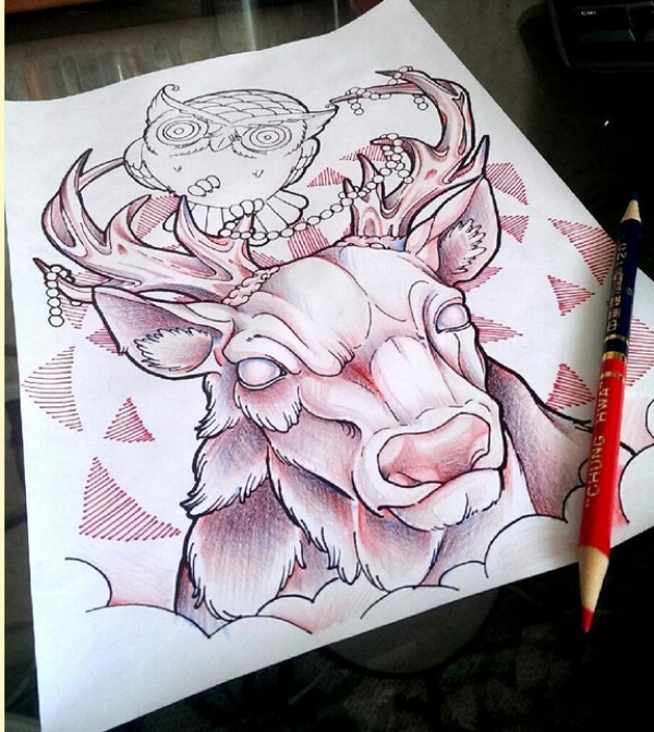 时尚漂亮好看的羚羊纹身手稿图片图片