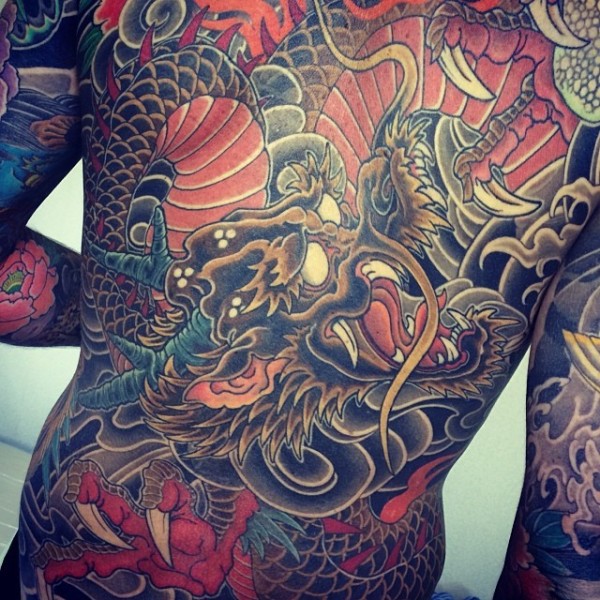 满背经典帅气的中国龙纹身