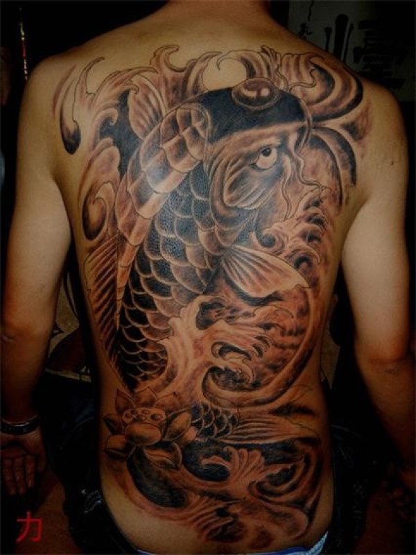大气漂亮的满背鲤鱼纹身