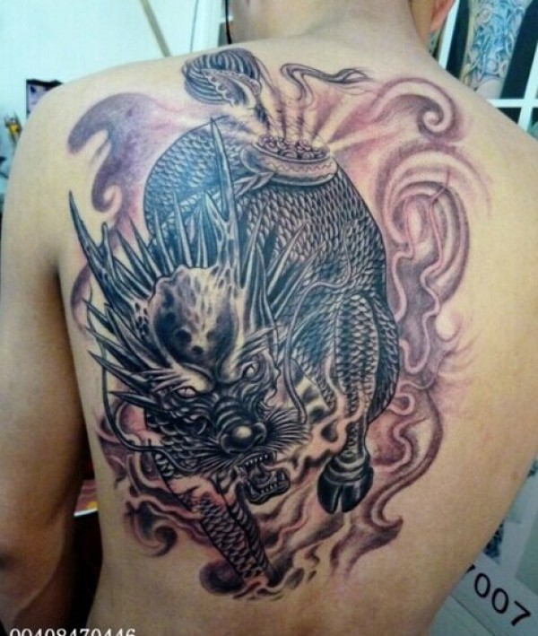 凶猛的上古神物 满背麒麟纹身