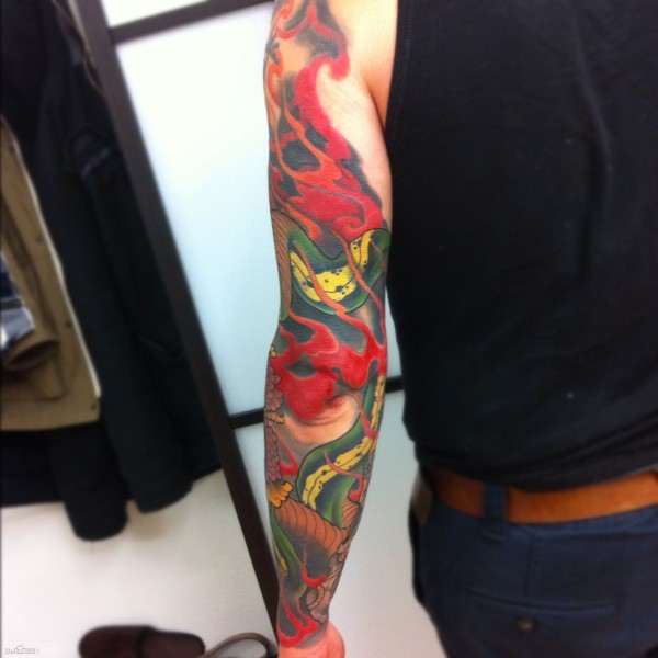手臂莲花蛇纹身图案_臂部纹身图案大全_纹身图吧