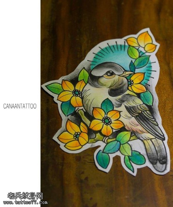 花鸟纹身手稿图片