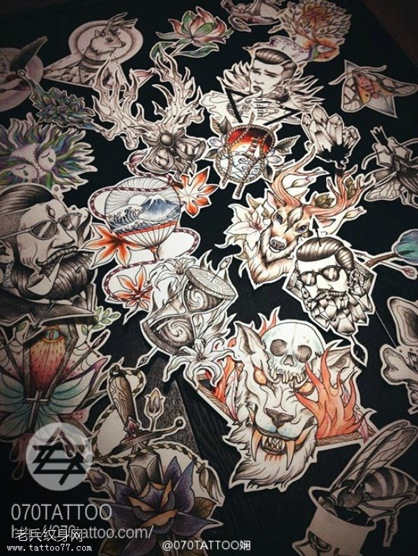 一组18张漂亮的欧美newschool动物纹身手稿图案