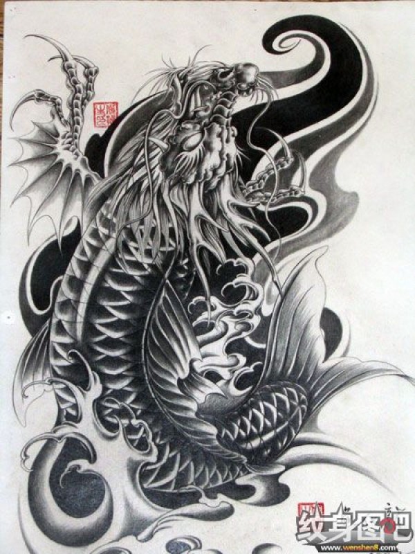 鱼化龙纹身手稿
