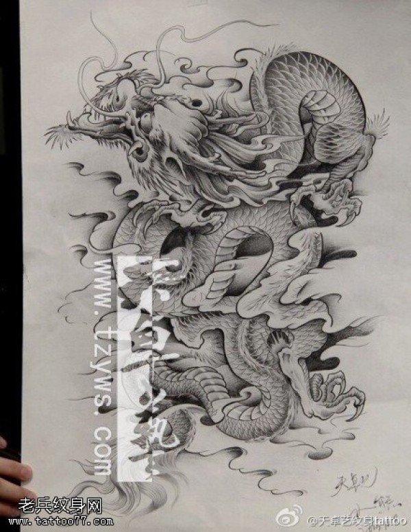 龙纹身手稿_一组老传统黑灰龙手稿纹身图案